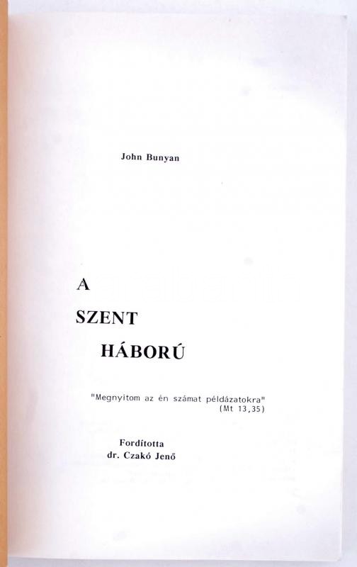 John Bunyan: A Szent Háború. Bp., é.n., Primo. Kiadói puhakötésben. https://www.darabanth.com/de/262-Fernauktion/262.0/Bucher/Bucher-Religion~40/John-Bunyan-A-Szent-Haboru-Bp-en-Primo-Kiadoi-puhakotesben~II1237966
