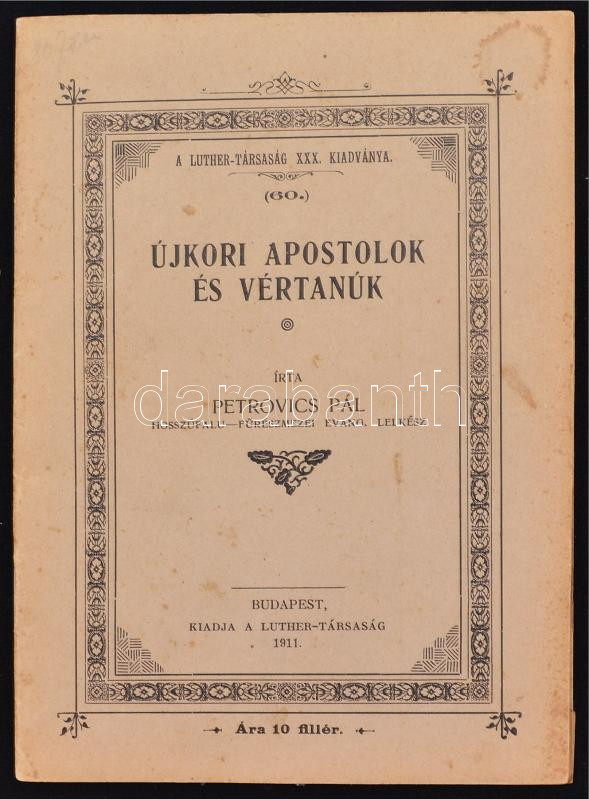 Petrovics Pál: Újkori apostolok és vértanúk. Bp., 1911, Luther Társasá... https://www.darabanth.com/de/262-Fernauktion/262.0/Bucher/Bucher-Religion~40/Petrovics-Pal-Ujkori-apostolok-es-vertanuk-Bp-1911-Luther-Tarsasag-Hornyanszky-V-54-~II1254179