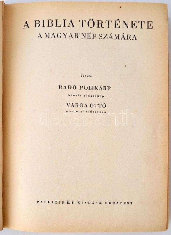 Radó Polikárp, Varga Ottó: A Biblia története (a magyar nép számára). ... https://www.darabanth.com/de/262-Fernauktion/262.0/Bucher/Bucher-Religion~40/Rado-Polikarp-Varga-Otto-A-Biblia-tortenete-a-magyar-nep-szamara-Bp-1938-Palladis-K~II1304253