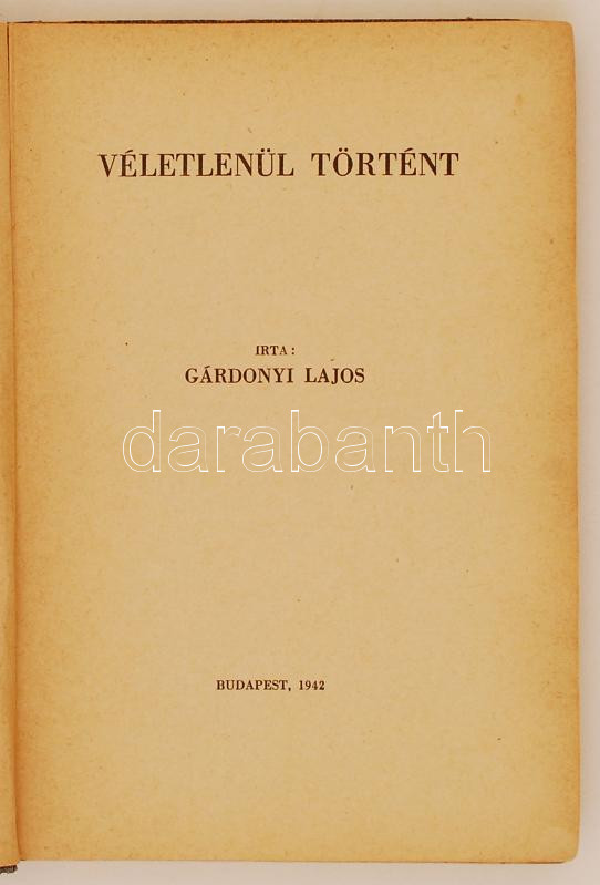 Gárdonyi Lajos: Véletlenül történt. Bp., 1942, Gárdonyi. Dedikált péld... https://www.darabanth.com/de/262-Fernauktion/262.0/Bucher/Bucher-Sonstige-Raritaten~45/Gardonyi-Lajos-Veletlenul-tortent-Bp-1942-Gardonyi-Dedikalt-peldany-Felvaszon-kot~II961510