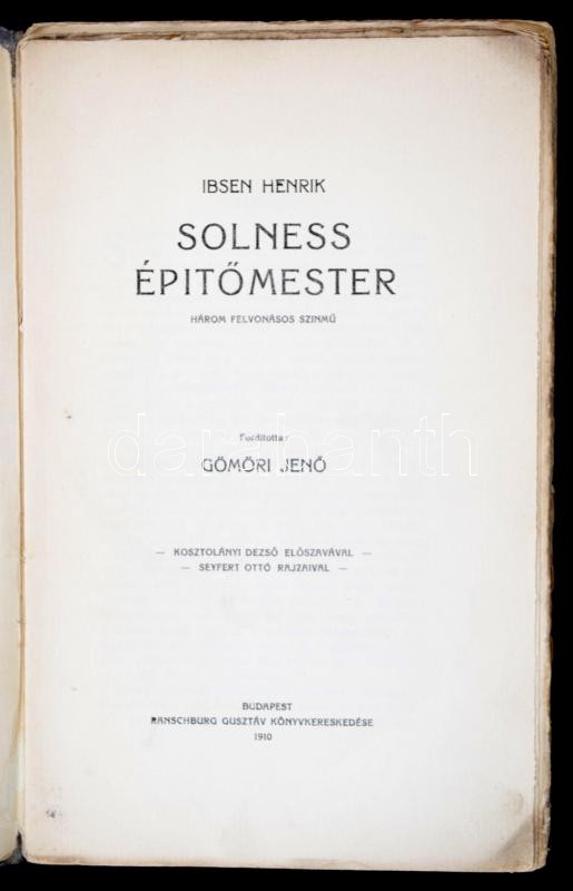 Ibsen Henrik: Solness építőmester. Három felvonásos színmű. Ford. Gömö... https://www.darabanth.com/de/262-Fernauktion/262.0/Bucher/Bucher-Sonstige-Raritaten~45/Ibsen-Henrik-Solness-epitomester-Harom-felvonasos-szinmu-Ford-Gomori-Jeno-Eloszo-Ko~II1299707