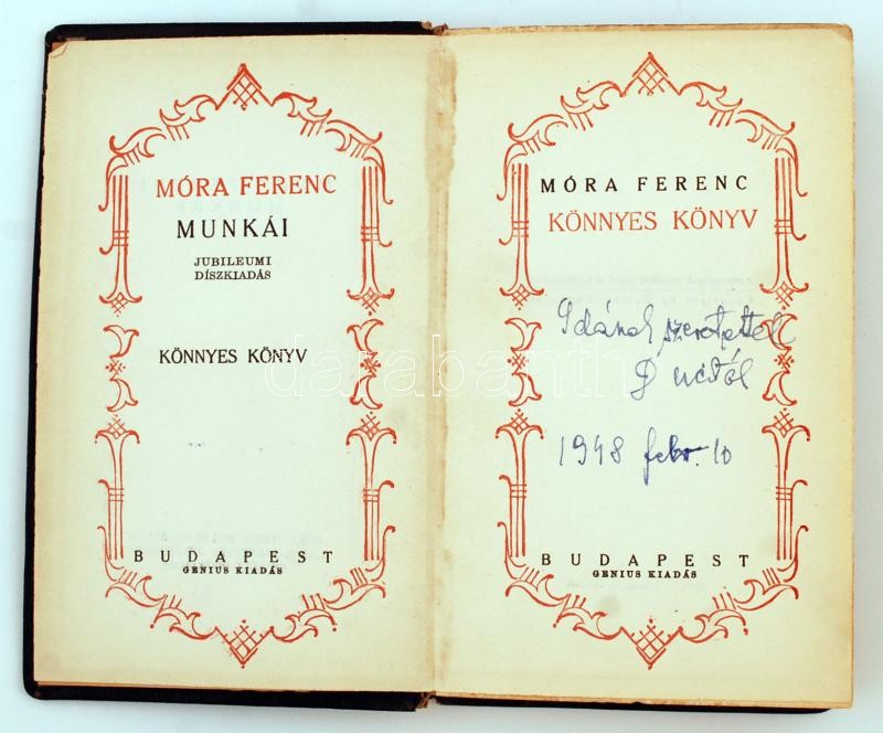 Móra Ferenc: Könnyes könyv. - - munkái. Jubileumi díszkiadás. Bp., (19... https://www.darabanth.com/de/262-Fernauktion/262.0/Bucher/Bucher-Sonstige-Raritaten~45/Mora-Ferenc-Konnyes-konyv---munkai-Jubileumi-diszkiadas-Bp-1935-Lantos-RT-Kiadoi-a~II965206