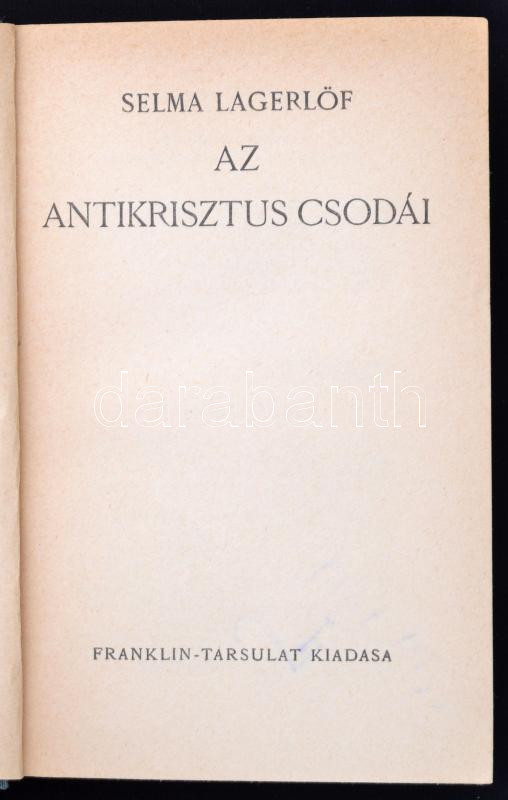 Selma Lagerlöf: Az Antikrisztus csodái. Bp., é.n., Franklin. 337 p. Ki... https://www.darabanth.com/de/262-Fernauktion/262.0/Bucher/Bucher-Sonstige-Raritaten~45/Selma-Lagerlof-Az-Antikrisztus-csodai-Bp-en-Franklin-337-p-Kiadoi-felvaszonkotesben~II1250467