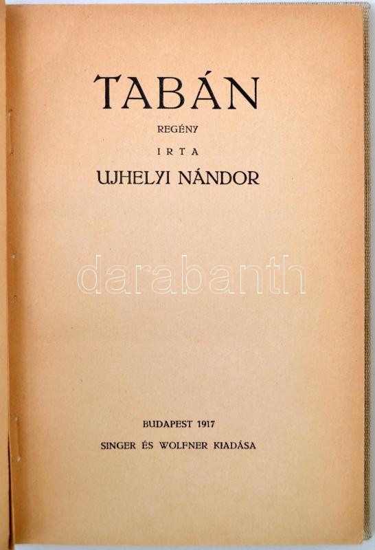 Ujhelyi Nándor: Tabán. Budapest, 1917, Singer és Wolfner. Modern egész... https://www.darabanth.com/de/262-Fernauktion/262.0/Bucher/Bucher-Sonstige-Raritaten~45/Ujhelyi-Nandor-Taban-Budapest-1917-Singer-es-Wolfner-Modern-egeszvaszon-kotesben~II1304599