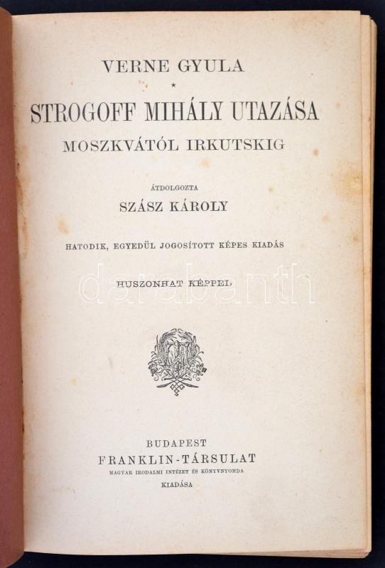 Verne Gyula: Sztrogoff Mihály. Átdolg. Szász Károly. Képekkel. Hatodik kiadás. Bp., é.n., Franklin Társ. 288 p. Kiadói, festett, piros félvászon-kötésben.