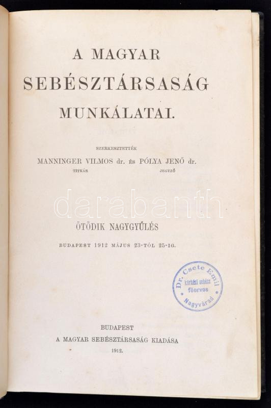 1912 - A magyar sebésztársaság munkálatai. V. naggyűlés. Bp., 1912. M.... https://www.darabanth.com/de/262-Fernauktion/262.0/Bucher/Bucher-Wissenschaft-und-Technik~35/1912--A-magyar-sebesztarsasag-munkalatai-V-naggyules-Bp-1912-M-Sebesztarsasag-402-~II1252726