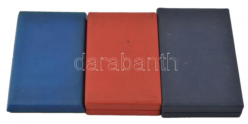 Beschreibung: 1951. "Közbiztonsági Érem" arany fokozata a rendőrség tagjai részére, aranyozott kitüntetés mellszalagon, szalagsávval tokban + 1964. "Kiváló Szolgálatért Érdemrend" aranyozott, zománcozott Br kitüntetés mellszalagon, szalagsávon miniatűrrel tokban + 1991. "1956-os Emlékérem" ezüstözött Br érem mellszalagon. Szign.: D.L. VÉSNÖK KFT. T:2