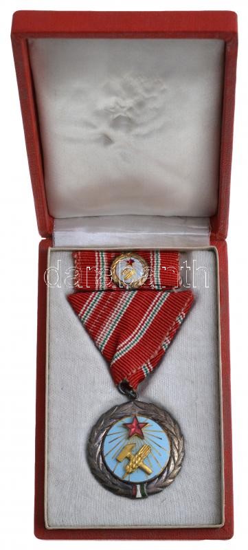 Beschreibung: 1954. "Munka Érdemérem" zománcozott Br kitüntetés mellszalagon, szalagsávval és miniatűrrel, eredeti dísztokban T:2