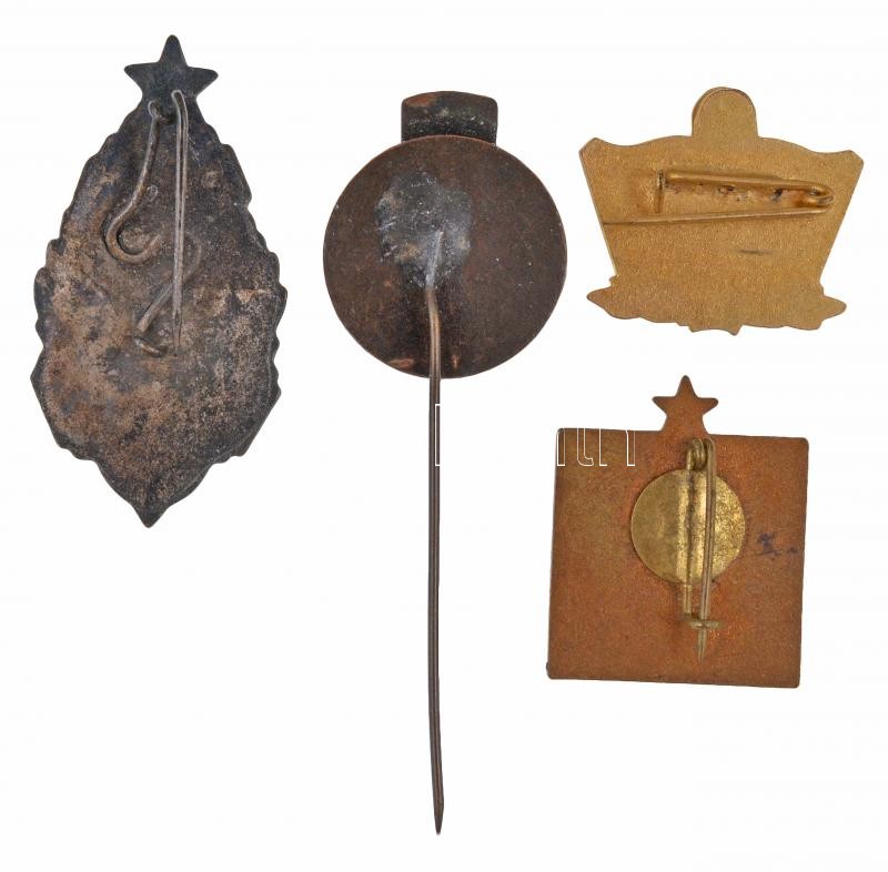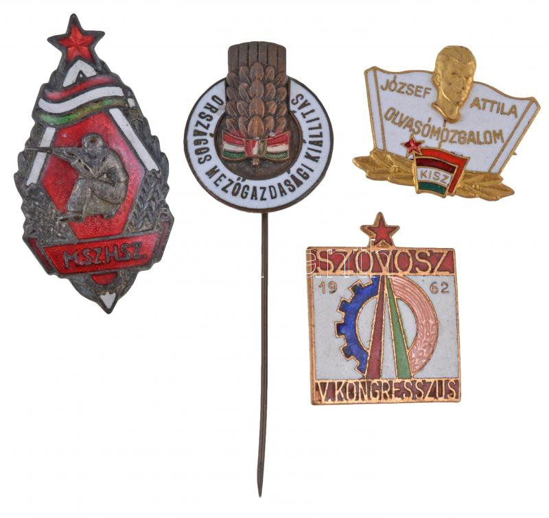 4db klf zománcozott szocialista jelvény és kitűző, közte ~1950. "MSZHSZ (Magyar Szabadságharcos Szövetség)" motoros zománcozott Br jelvény, ~1970. "Országos Mezőgazdasági Kiállítás" zománcozott Br kitűző T:2