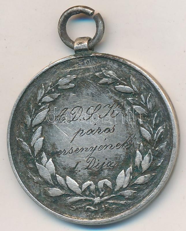 Beschreibung: ~1920-1930. "Ép testben ép lélek / A.D.I.K. páros versenyének I. Díja" jelzett Ag díjérem "S.G.A. (Scheid Ezüstárú és Éremgyár) gyártói jelzéssel (11,56g/0.800/30mm) T:2 szennyeződés, patina