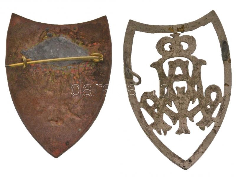 ~1930-1940. "Sancta Maria Általános Iskola és Leánygimnázium" zománcozott tombak (gimnáziumi) és fém (elemi, tű nélkül) iskolajelvények (2xklf) T:2,2- kis zománchiba