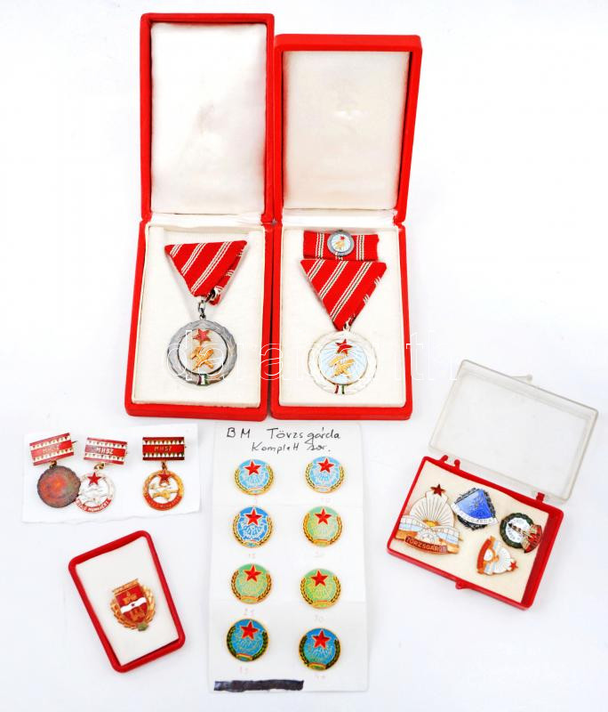 ~1950-1980.18db-os vegyes magyar jelvény és kitüntetés tétel, közte "Munka Érdemérem" (2x) zománcozott Br kitüntetés, mindkettő tokban, egyik miniatűrrel együtt; "BM Törzsgárda" (8xklf) 5,10,15,20,25,30,35 és 40 év után T:vegyes