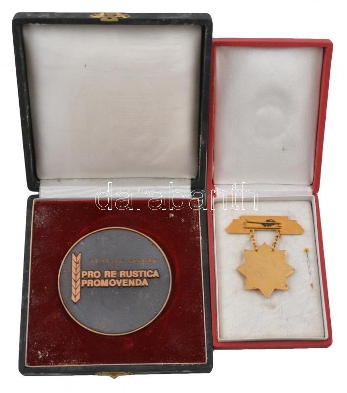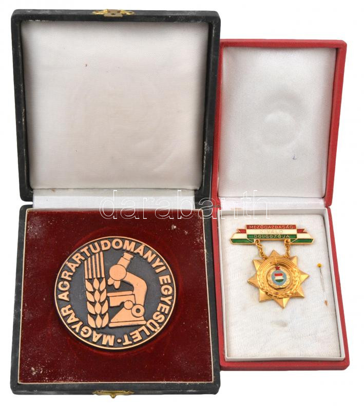 Beschreibung: ~1970-1980. "Mezőgazdaság Kiváló Dolgozója" zománcozott, aranyozott fém kitüntetés + "Magyar Agrártudományi Egyesület / Pro Re Rustica Promovenda" fém érem tokban (77mm) T:2