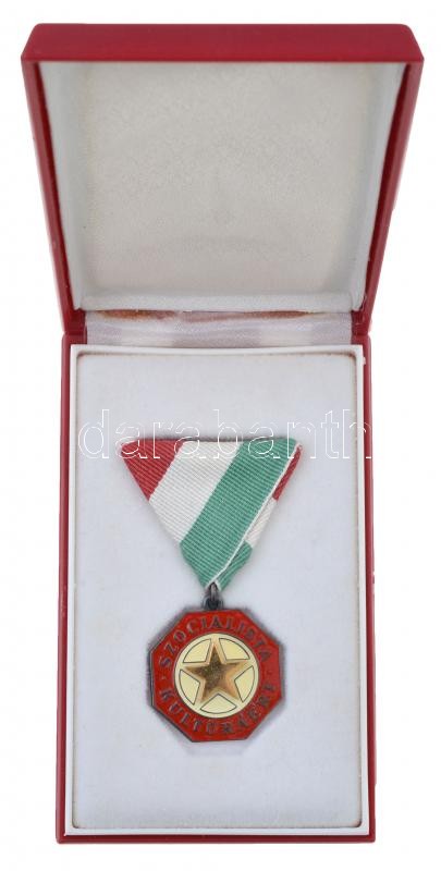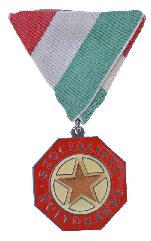 ~1970. "A Szocialista Kultúráért" zománcozott fém kitüntetés mellszalagon T:2