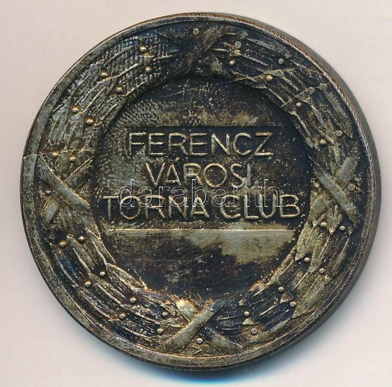 Beschreibung: Berán Lajos (1882-1943) ~1930. "Ferencz Városi Torna Club" ezüstözött fém díjérem (40mm) T:2- patina
