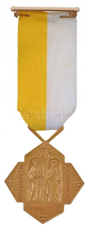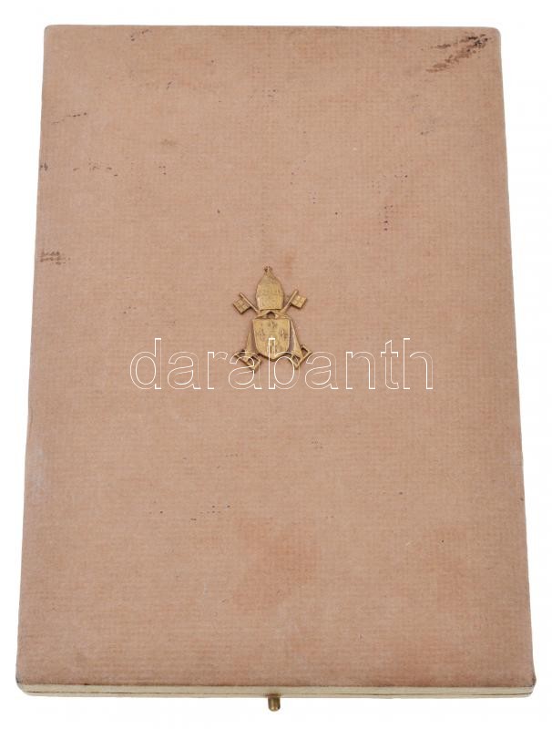 Vatikán ~1960-1970. ""Pro Ecclesia et Pontifice (Az egyházért és pápáért)" aranyozott kitüntetés mellszalaggal eredeti dísztokban (50x50mm) T:1-