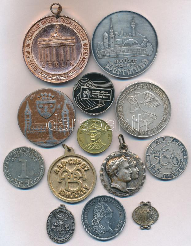 13db vegyes, főleg külföldi emlékérem, medál, közte Ausztrália 1982. "Lord Baden-Powell 1857-1941 / A cserkészet 75 éves évfordulójára" T:vegyes
