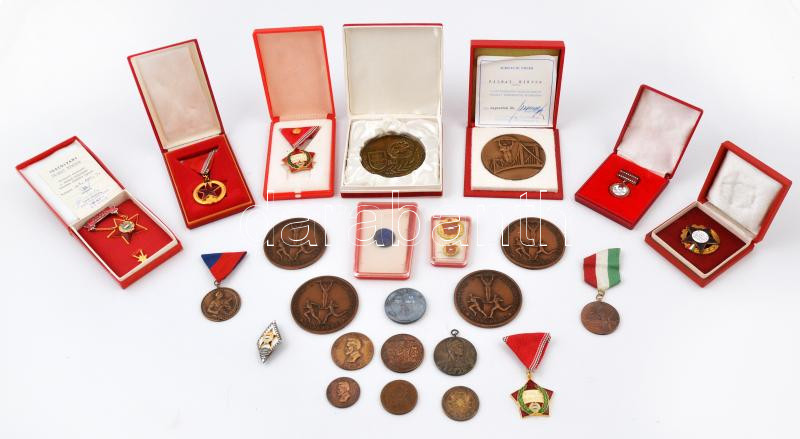 Beschreibung: 24db-os vegyes magyar emlékérem, kitüntetés és jelvény tétel, közte Jeckel Ferenc (1950-) 1970. "Szövetkezeti Munkáért Jubileumi Emlék" Br emlékérem eredeti dísztokban adományozói irattal (70mm); ~1960-1970. "Kiváló Földműves Szövetkezeti Dolgozó" zománcozott fém jelvény dísztokban; "Zrínyi Katonai Akadémia" zománcozott fém jelvény T:vegyes