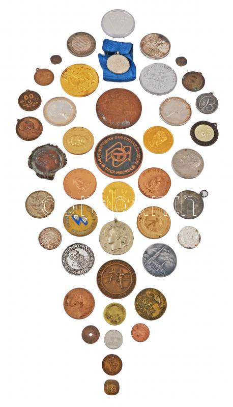 Beschreibung: 42db vegyes magyar és külföldi emlékérem, zseton, kitüntetés, replika, 1940. "Erdélyi részek felszabadulásának emlékére" cink emlékérem mellszalag nélkül. Szign.:BERÁN, Szlovákia DN "Körmöcbányai Múzeum" ezüstözött fém múzeumi zseton (27mm) (2x) T:vegyes