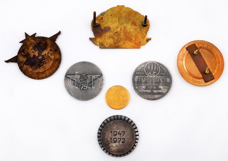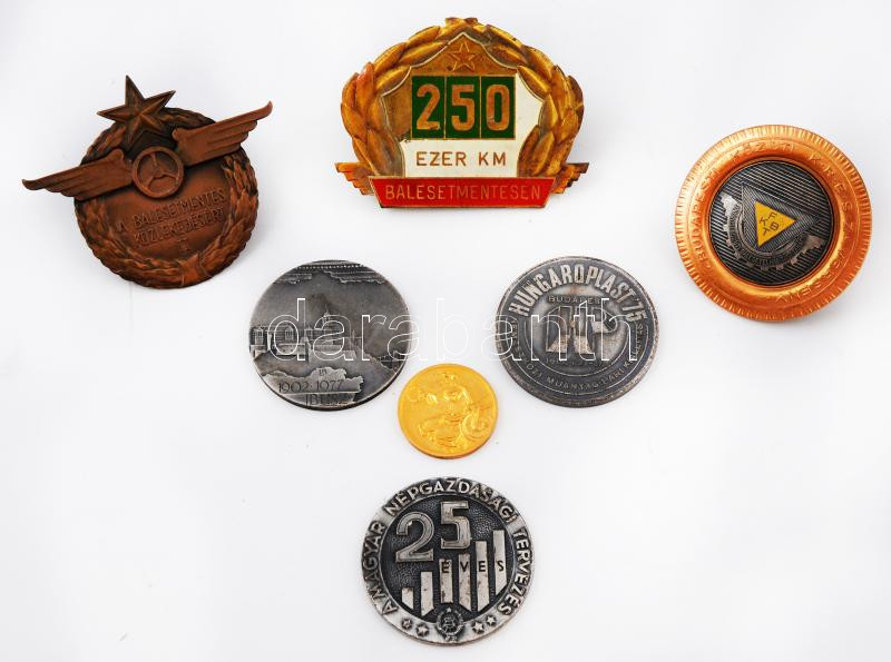 Beschreibung: 7db-os vegyes emlékérem, autójelvény tétel, közte ~1970-1980. "250 ezer km balesetmentesen" zománcozott Br atuójelvény, "BKV Hűségérem" aranyozott Br emlékérem (36mm) T:vegyes