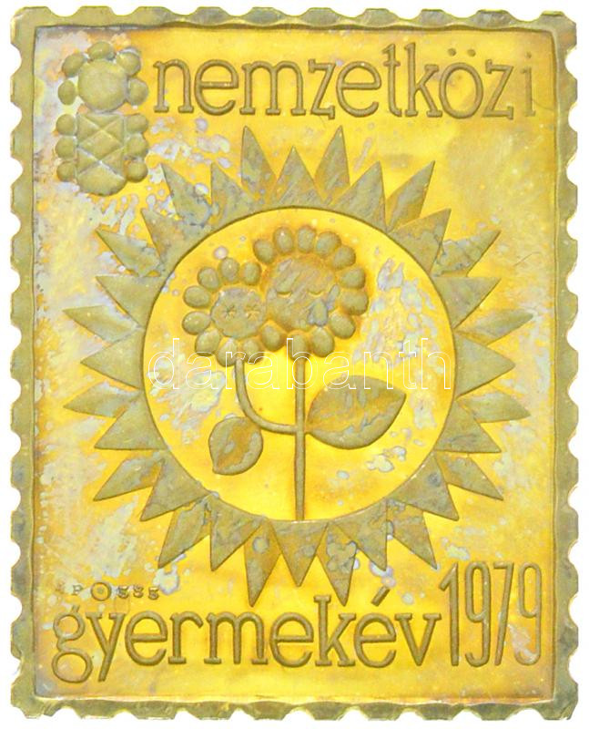 1979. "Nemzetközi Gyermekév" alkalmára kiadott Au bélyegérem (3.80g/0.585) T:2 (PP) oxidáció Hungary 1979. "International Year of the Child" commemorative gold stamp medallion (3.83g/0.585) C:XF (PP) oxidation