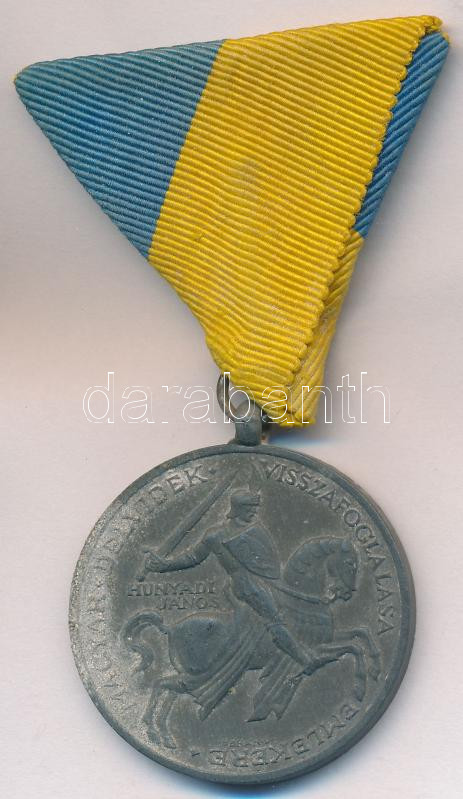 Hungary 1941. "Commemorative Medal for the Return of Southern Hungary" zinc medal with original ribbon. Sign.:BERÁN L. C:VF,F edge error