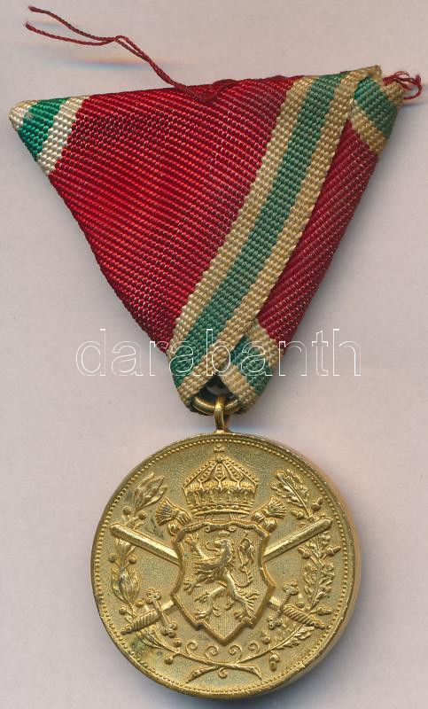 Bulgaria 1933. "Commemorative Medal for the War of 1915-1918" gilt metal decoration with ribbon C:XF