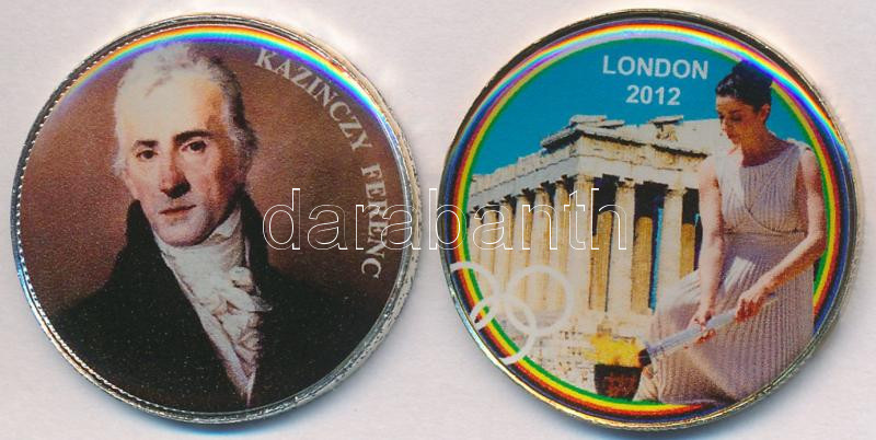 DN 50Ft "Nagy Magyarok / Kazinczy Ferenc" multicolor emlékérme sorozatból, ezüstözött Cu-Ni + DN 200Ft "Londoni Olimpia 2012" multicolor emlékérme sorozatból T:2