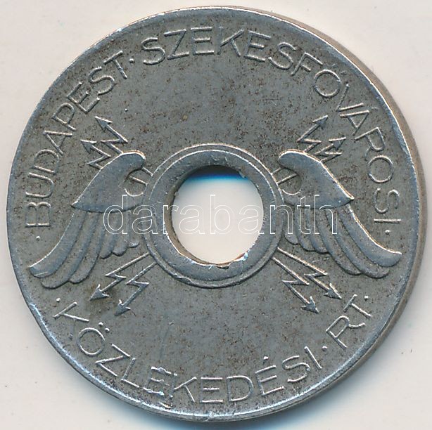 Beschreibung: 1946-1949. 20Ft "B.SZ.K.R.T (Budapest Székesfővárosi Közlekedési Részvénytársaság)" fém közlekedési bárca. Szign.: Berán L. T:2