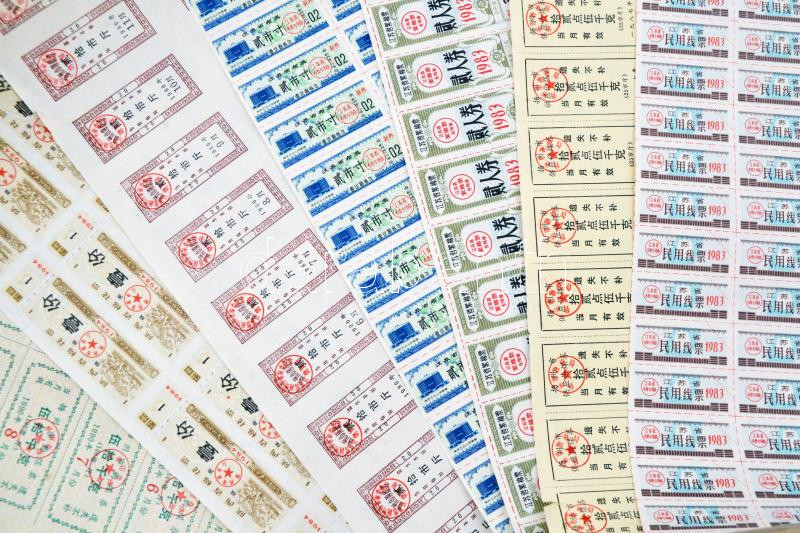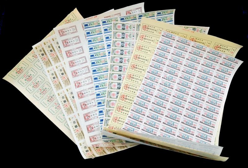 Kína ~1980. 7db élelmiszerjegy ív T:I-,II China ~1980. 7pcs of food coupons in sheet C:AU,XF