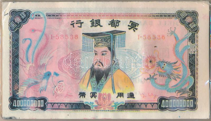 Kína DN Égetési pénz sérült eredeti csomagolásban ~120db 400.000.000 névértékben T:I China ND Hell banknotes in damaged original packing ~120x 400.000.000 C:UNC