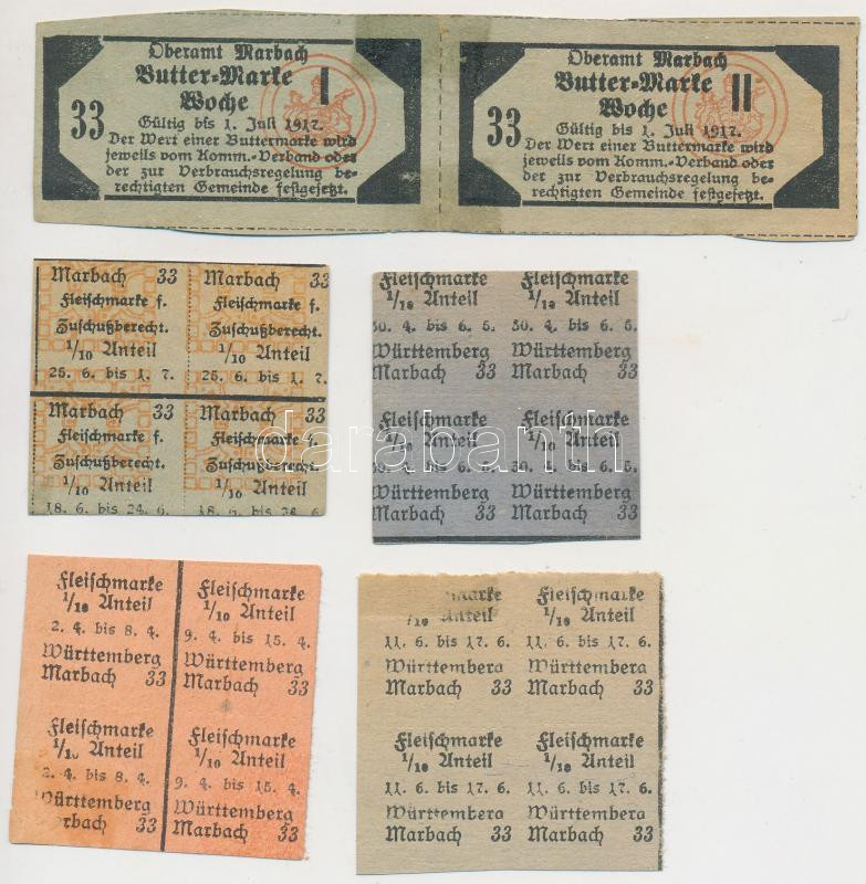Német Birodalom / Marbach 1917. 18db élelmiszerjegy T:I-,II,III German Empire / Marbach 1917. 18pcs of food coupons C:AU,XF,F