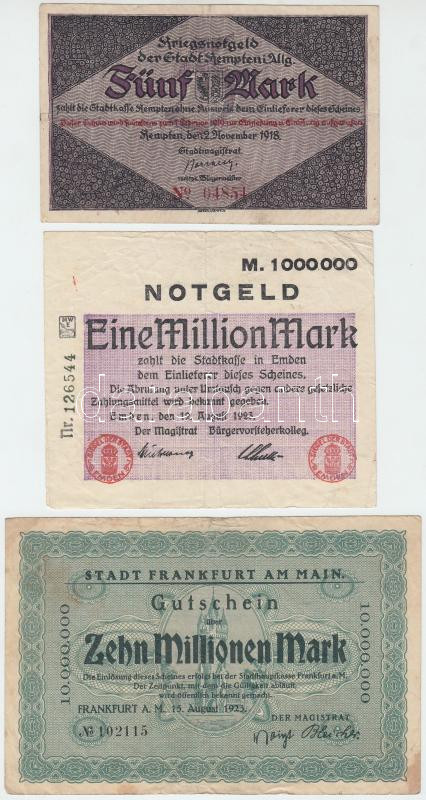 Beschreibung: Németország / Weimari Köztársaság 1918-1923. 5db klf szükségpénz, közte Emden, Frankfurt am Main, Köln T:vegyes