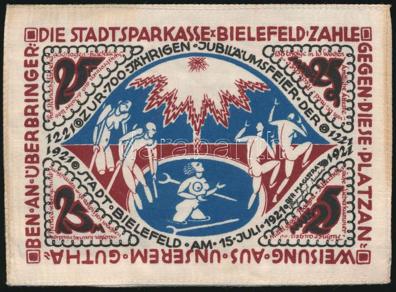 Beschreibung: Németország / Weimari Köztársaság / Bielefeld 1921. 25M selyem T:I