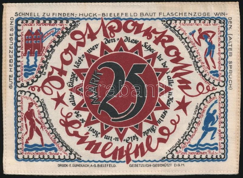 Ge... https://www.darabanth.com/de/262-Fernauktion/262.0/Numismatik/Notgelden~200007/Nemetorszag-Weimari-Koztarsasag-Bielefeld-1921-25M-selyem-TI--Germany-Weimar-Republic-~II1287172