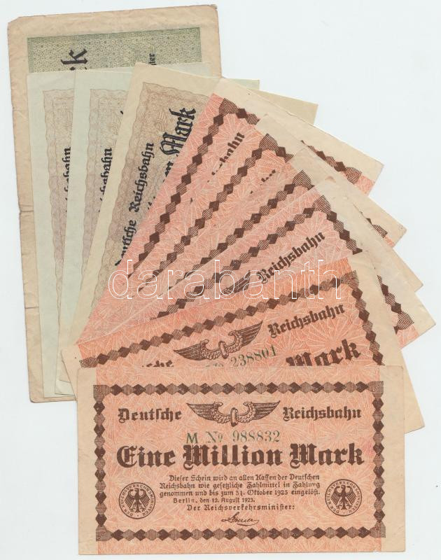 Németország / Weimari Köztársaság / Birodalmi Vasút 1923. 10db-os szükségpénz tétel, közte 2db sorszámkövető T:vegyes Germany / Weimar Republic / Deutsche Reichsbahn 1923. 10pcs of necessity notes, with 2pcs of sequential serials C:mixed