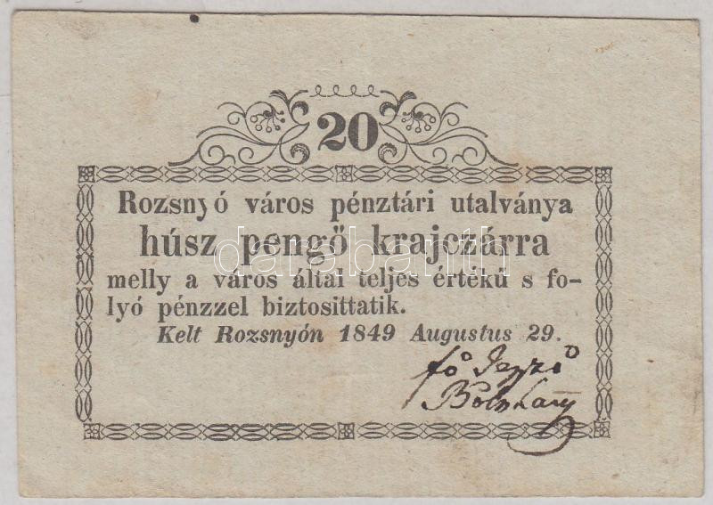 Rozsnyó 1849. 20kr "Rozsnyó város pénztári utalványa" T:III