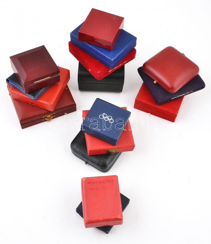 Beschreibung: 16db üres éremtartó tok, klf méretekben, használt állapotban