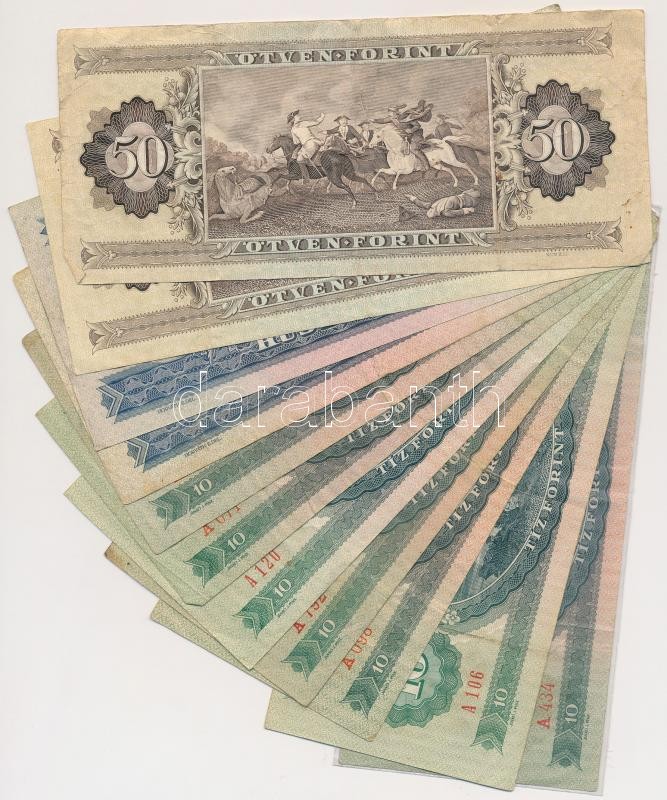 11db vegyes forint bankjegy T:III https://www.darabanth.com/de/262-Fernauktion/262.0/Numismatik/Ungarische-Banknoten~200008/11db-vegyes-forint-bankjegy-TIII~II1303083