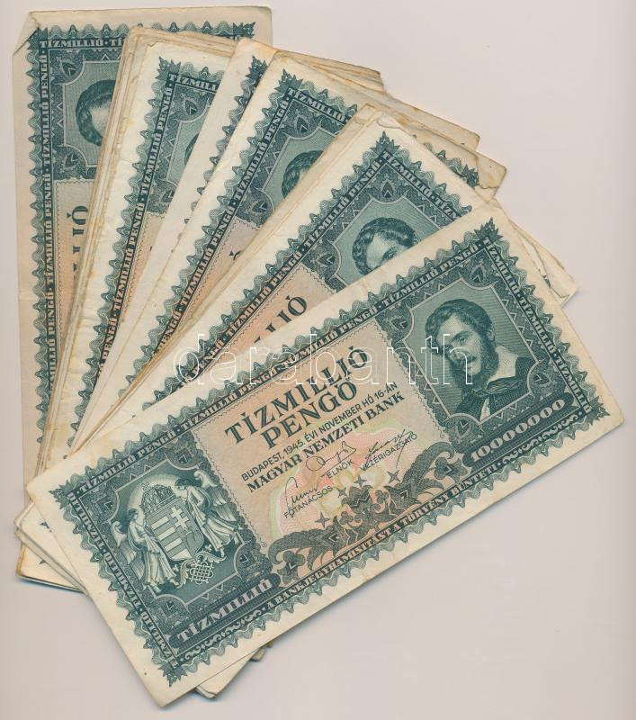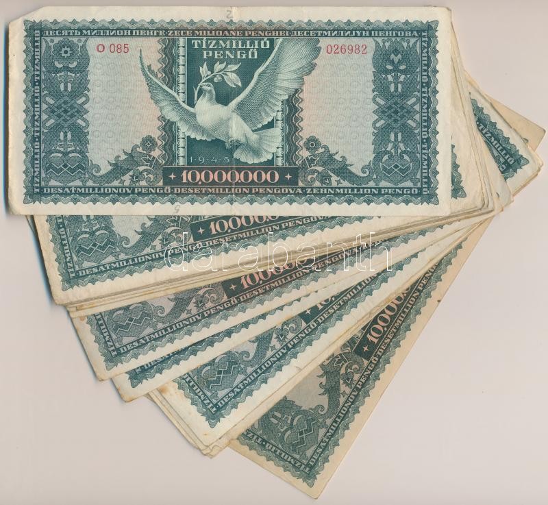 1945. 10.000.000P (30x) T:vegyes https://www.darabanth.com/de/262-Fernauktion/262.0/Numismatik/Ungarische-Banknoten~200008/1945-10000000P-30x-Tvegyes~II1305212