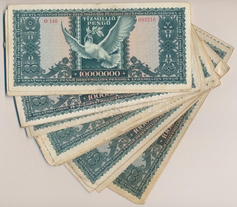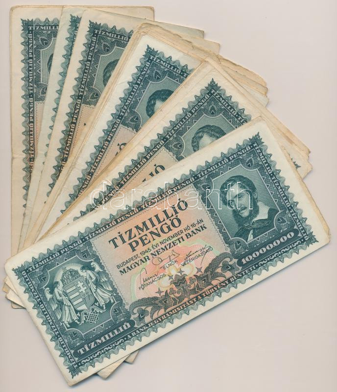 1945. 10.000.000P (30x) T:vegyes https://www.darabanth.com/de/262-Fernauktion/262.0/Numismatik/Ungarische-Banknoten~200008/1945-10000000P-30x-Tvegyes~II1305222