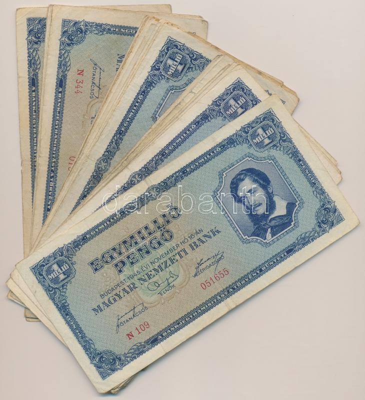1945. 1.000.000P (30x) T:vegyes https://www.darabanth.com/de/262-Fernauktion/262.0/Numismatik/Ungarische-Banknoten~200008/1945-1000000P-30x-Tvegyes~II1305227