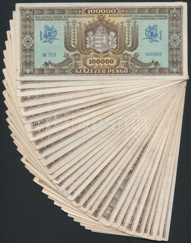 1945. 100.000P (30x) T:vegyes https://www.darabanth.com/de/262-Fernauktion/262.0/Numismatik/Ungarische-Banknoten~200008/1945-100000P-30x-Tvegyes~II1304946