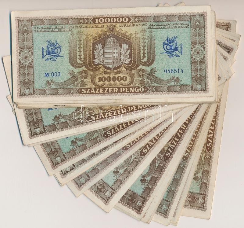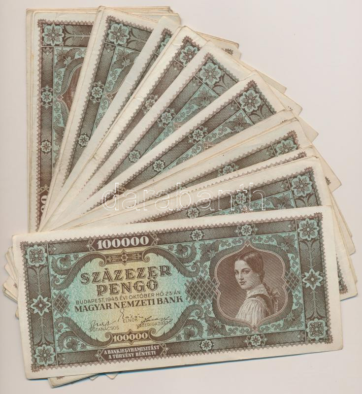1945. 100.000P (30x) T:vegyes https://www.darabanth.com/de/262-Fernauktion/262.0/Numismatik/Ungarische-Banknoten~200008/1945-100000P-30x-Tvegyes~II1305134