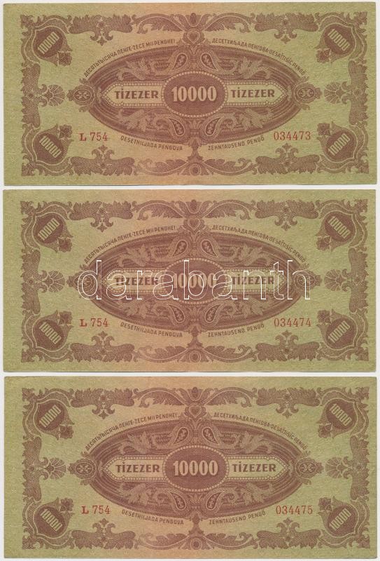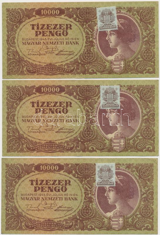 Beschreibung: 1945. 10.000P (3x) sorszámkövetők "MNB" bélyeggel T:II,III szép papír