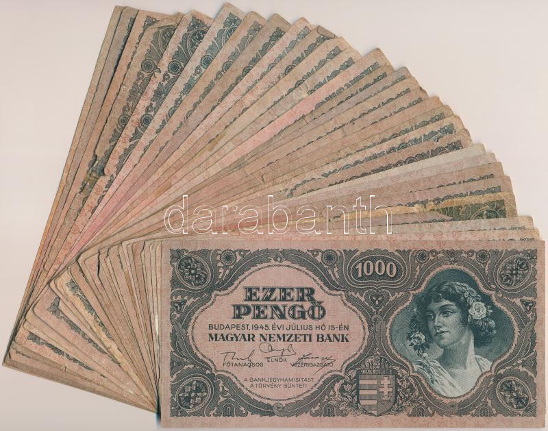 1945. 1000P (30x) mind bélyeg nélkül T:vegyes https://www.darabanth.com/de/262-Fernauktion/262.0/Numismatik/Ungarische-Banknoten~200008/1945-1000P-30x-mind-belyeg-nelkul-Tvegyes~II1304934