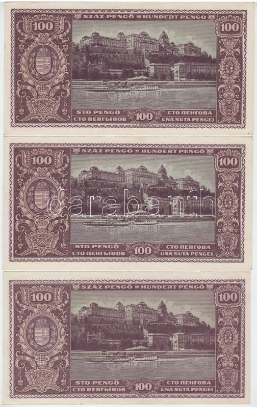 1945. 100P (3x) sorszámkövetők, "BÜNTETÉS" szóban "N&qu... https://www.darabanth.com/de/262-Fernauktion/262.0/Numismatik/Ungarische-Banknoten~200008/1945-100P-3x-sorszamkovetok-BUNTETES-szoban-N-felett-lemezhiba-TII-szep-papir~II1305275