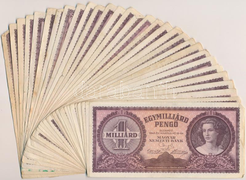 1946. 1.000.000.000P (30x) T:vegyes https://www.darabanth.com/de/262-Fernauktion/262.0/Numismatik/Ungarische-Banknoten~200008/1946-1000000000P-30x-Tvegyes~II1304907