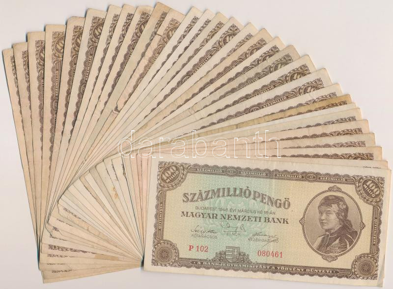 1946. 100.000.000P (30x) T:vegyes https://www.darabanth.com/de/262-Fernauktion/262.0/Numismatik/Ungarische-Banknoten~200008/1946-100000000P-30x-Tvegyes~II1304877
