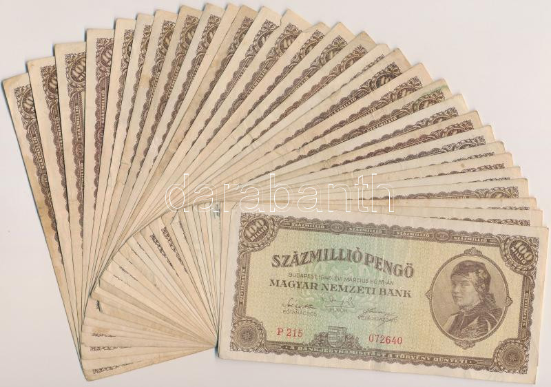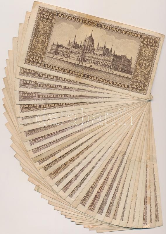 1946. 100.000.000P (30x) T:vegyes https://www.darabanth.com/de/262-Fernauktion/262.0/Numismatik/Ungarische-Banknoten~200008/1946-100000000P-30x-Tvegyes~II1304883